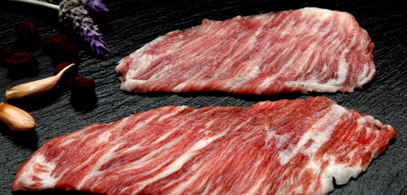 Descubre la jugosidad y la calidad de nuestras carnes seleccionadas de cerdo ibérico envasadas al vacío como abanico, secreto de 1ª y 2ª, lomo ibérico, lagarto, lagartito, solomillo y presa tanto troceado como fileteado.